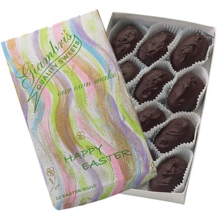 12 Easter Eggs with our homemade, smooth, creamy peanut butter center covered in Belgian Dark Chocolate.