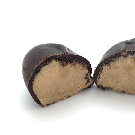 Our homemade smooth, creamy peanut butter center covered in dark Belgian chocolate