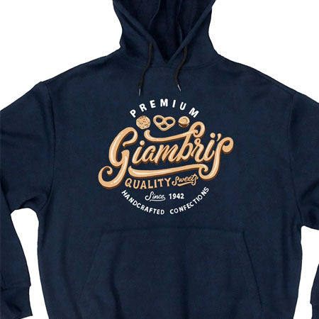 Show off your favorite candy brand around town with this heavy weight, navy hoodie!