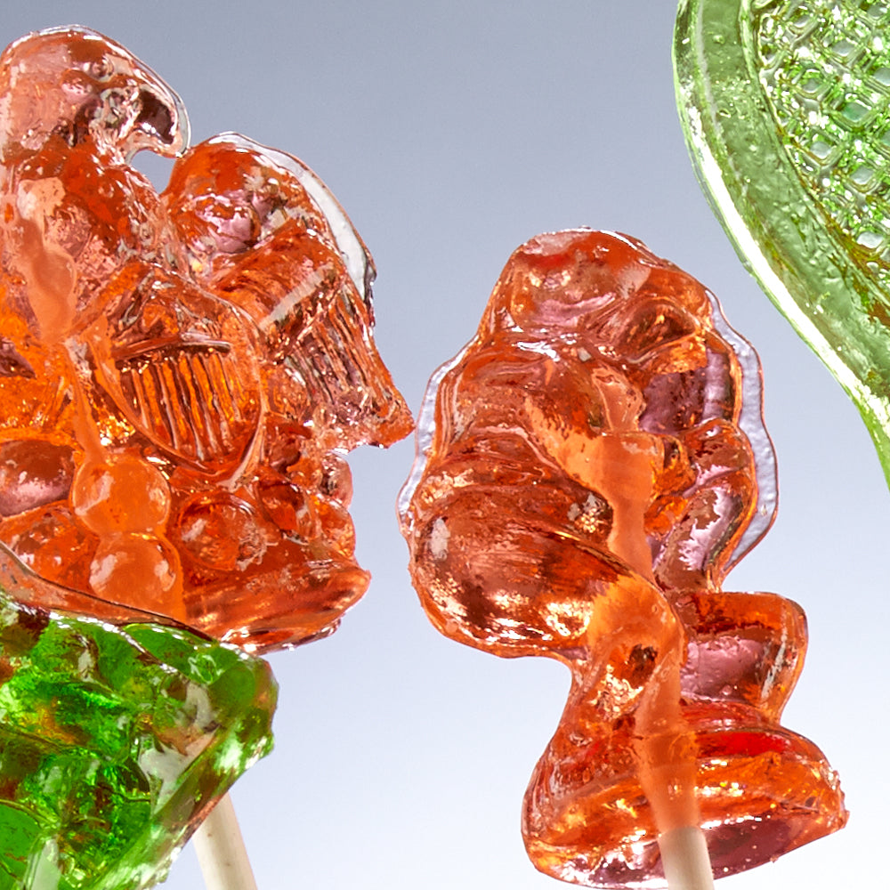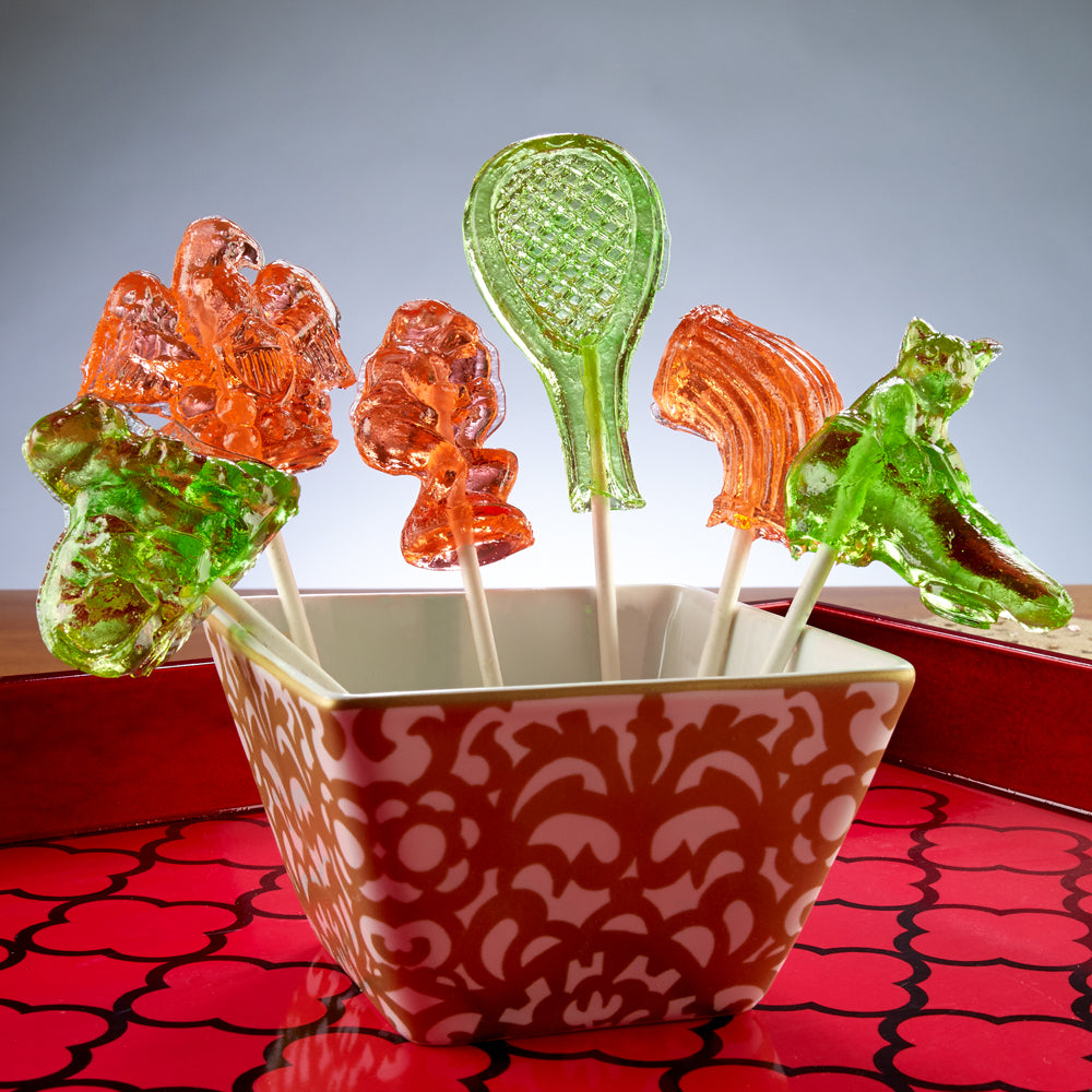 This hard candy assortment includes pops in a variety of colors and quirky shapes including cars, sports, historical figurines, and animals!